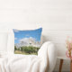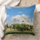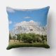 Almohada de tiro de la foto con un paisaje en Puglia, Italia, con la ciudad blanca (bianca) del citta Ostuni en una colina sobre una huerta del olivo debajo de un cielo nublado.