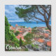 Vista del pequeño pueblo de Omis rodeado de montañas, río Cetina y mar, Riviera de Makarska, Croacia. Vista del pino, casco antiguo con tejados rojos y vista azul.