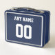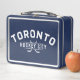 Logo clásico blanco de "Ciudad de hockey de Toronto" en la caja de almuerzo azul, con nombre y número de personalizable en la parte trasera. Ofrece una idea de regalo personalizada ideal para el aficionado al hockey de Toronto.