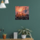 Una ciudad de fantasía con una espada gigante incrustada cerca. Esta majestuosa obra de arte representa una espada colosal, su hilera adornada con detalles intrincados, que se eleva sobre un paisaje urbano que se extiende a lo largo de todo el tiempo. Bañada en el cálido resplandor de una dramática puesta de sol, la escena evoca una sensación de poder antiguo y fantasía épica. Que esta pieza te lleve a un mundo de héroes y leyendas. Una gran espada, su diseño insinuando una tradición olvidada, su silueta impuesta contra el cielo feroz, domina una ciudad que se extiende a lo lejos. Esta pieza aporta un toque de fantasía y aventura a cualquier habitación. Esta ilustración se puede personalizar, imprimir y descargar.