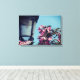 Flores rosas y decoración de pared de fotografía de la ciudad con lámparas de calle de estilo vintage.