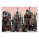 Representación 3D de una ciudad futurista de ciencia ficción sobre un fondo de cielo rosa