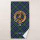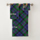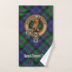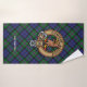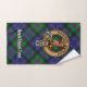 Insignia de escudo del Clan Baird rodeada de una correa y hebilla sobre el fondo del tartán. Texto personalizado en cada toalla.