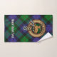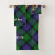 Insignia escudo del clan Blair rodeada por una correa y hebilla sobre el fondo del tartán. Texto personalizado en cada toalla.