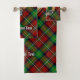 Insignia de escudo Clan Boyd rodeada por una correa y hebilla sobre el fondo del tartán. Texto personalizado en cada toalla.