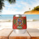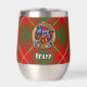 La insignia escudo del clan Bruce está rodeada por una correa y hebilla sobre el fondo del tartán. Texto personalizado en ambos lados.