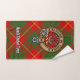 Insignia escudo del Clan Cameron rodeada por una correa y hebilla sobre el fondo del tartán. Texto personalizado en cada toalla.