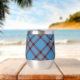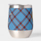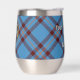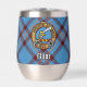 Insignia escudo del clan Elliot rodeada por una correa y hebilla sobre el fondo antiguo tartán. Texto personalizado en ambos lados.