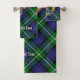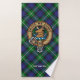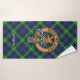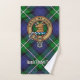 Insignia escudo de Clan Forbes rodeada por una correa y hebilla sobre el fondo del tartán. Texto personalizado en cada toalla.