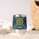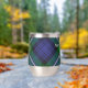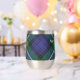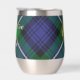 Insignia escudo de Clan Forbes rodeada por una correa y hebilla sobre el fondo del tartán. Texto personalizado en ambos lados.