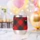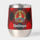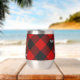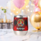 Clan Gregor o insignia escudo MacGregor rodeada por una correa y hebilla sobre el fondo tartán de Rob Roy. Texto personalizado en ambos lados.