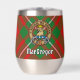 Clan Gregor o insignia escudo MacGregor rodeada de una correa y hebilla sobre el fondo tartán. Texto personalizado en ambos lados.