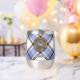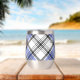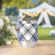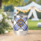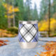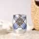 Insignia escudo de Clan Hannay rodeada por una correa y hebilla sobre el fondo tartán. Texto personalizado en ambos lados.