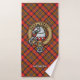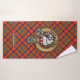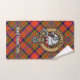 Insignia escudo de Clan Hepburn rodeada por una correa y hebilla sobre el fondo del tartán. Texto personalizado en cada toalla.