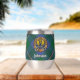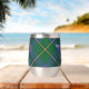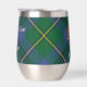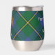 Insignia escudo Clan Johnston rodeada de una correa y hebilla sobre el fondo del tartán. Texto personalizado en ambos lados.