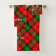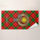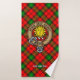 Insignia escudo de Clan Kerr rodeada por una correa y hebilla sobre el fondo del tartán. Texto personalizado en cada toalla.