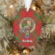 Insignia escudo del clan MacAulay rodeada por una correa y hebilla sobre el fondo del tartán. Texto personalizado en ambos lados.