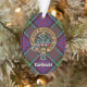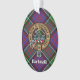 Clan MacDonald de la insignia escudo Clanranald rodeada de una correa y hebilla sobre el fondo tartán. Texto personalizado en ambos lados.