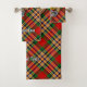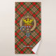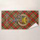 Insignia escudo del clan MacGill rodeada por una correa y hebilla sobre fondo tartán. Texto personalizado en cada toalla.