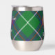 Insignia de escudo del clan MacIntyre rodeada por una correa y hebilla sobre el fondo del tartán. Texto personalizado en ambos lados.