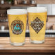 Insignia escudo del clan MacKenzie rodeada de correa y hebilla sobre fondo tartán de caza marrón. Texto personalizado en ambos lados.