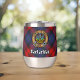 Insignia escudo del clan MacLachlan rodeada por una correa y hebilla sobre el fondo tartán. Texto personalizado en ambos lados.