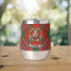 Insignia escudo del clan MacLean rodeada por una correa y hebilla sobre fondo tartán. Texto personalizado en ambos lados.