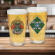 Insignia de escudo del clan MacLeod rodeada por una correa y hebilla sobre fondo de tartán de caza. Texto personalizado en ambos lados.