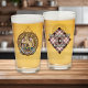Insignia de escudo del clan MacPherson rodeada por una correa y hebilla sobre fondo de tartán de caza. Texto personalizado en ambos lados.