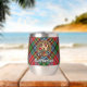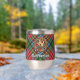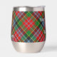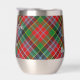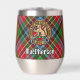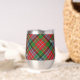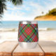 Insignia escudo del clan MacPherson rodeada por una correa y hebilla sobre el fondo del tartán. Texto personalizado en ambos lados.