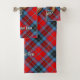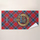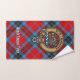Insignia escudo del clan MacTavish rodeada por una correa y hebilla sobre el fondo del tartán. Texto personalizado en cada toalla.