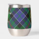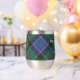 Insignia escudo del clan Paterson rodeada por una correa y hebilla sobre el fondo del tartán. Texto personalizado en ambos lados.