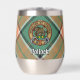 Insignia de escudo del clan Pollock rodeada por una correa y hebilla sobre el fondo del tartán. Texto personalizado en ambos lados.