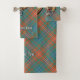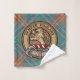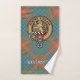 Insignia escudo de Clan Wilson rodeada por una correa y hebilla sobre el fondo antiguo del tartán. Texto personalizado en cada toalla.