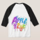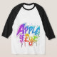 Un divertido y colorido diseño de camisetas con la frase "Apple of My Eye" escrita en un tipo de letra divertida y sin igual. Cada letra es de un color pastel diferente, con un ligero efecto 3D, que le da un toque alegre y caprichoso.