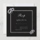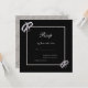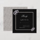 Elegante y moderno RSVP de boda en colores plata y negro. Con un marco brillante de purpurina plateada que encierra los detalles de su evento, sobre fondo negro, con decoraciones en las esquinas de anillos de boda de diamantes brillantes. Todo el texto es totalmente personalizable para satisfacer sus necesidades. Si desea ayuda para personalizar su producto, o desea productos coincidentes, por favor contácteme a través de mi tienda y estaré encantado de ayudarlo.