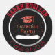 La clase roja y negra del purpurina moderna, falsa de la fiesta de graduación 2018 que las etiquetas engomadas ennegrecen el marco circular con el falso borde metálico, de plata exhibe el falso purpurina, casquillo rojo de la graduación con el diploma/el grado. Lee a la "fiesta de graduación" con las estrellas dispersadas que parece el purpurina rojo brillante, a juego. Personalizado con el nombre del graduado en hacer juego letras rojas, retras del estilo en el top y la "clase curvada de 2018" abajo en hacer juego rojo. (El año de la clase se puede cambiar.) Moda, diseño moderno de la graduación a ir con cualquier tema rojo de la fiesta de graduación o decoración. Tenemos invitaciones rojas de coordinación de la fiesta de graduación del purpurina, así como otras fuentes femeninas de la fiesta de graduación del purpurina y temas personalizados del fiesta en nuestro Zazzle.com/angela65* hacen compras. Simple, la moda personalizó el estilo de la fiesta de graduación para los colores rojos y negros de la escuela, los sellos para sobres femeninos de la fiesta de graduación del purpurina, o los favores de fiesta de graduación rojos y negros. Haga clic la opción del personalizar para cambiar colores de texto, tamaño, y estilos de fuente.