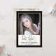 Esta moderna invitación a la fiesta de graduación incluye una foto cuadrada en la parte delantera y una foto vertical en la parte trasera. Este diseño negro y dorado está registrado con el año de graduación de 2025 apareciendo en un guión elegante.