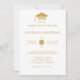 Clase de 2025 "Lo hice" Invitación a graduados de fotografía. Invitar a una celebración del Graduado. Todos los detalles están en la parte delantera - texto dorado en un fondo blanco, la parte trasera muestra tu graduado con tu foto favorita y el texto: "¡Lo hice!" Hay un degradado superpuesto de color blanco para hacer el texto más visible sobre la foto. Esto se puede ocultar dentro de la Herramienta de diseño.