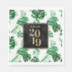 Clase 2019 Hoja Verde Trópica servilleta. Hojas verdes sobre el fondo de un punto polka negro con letras doradas en 2019.