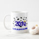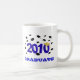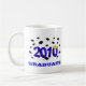 Taza de la celebración de la graduación del azul y del oro. Modifique el texto y los fondos para requisitos particulares con su nombre y colores de la escuela para crear los regalos únicos y personalizados. Camisetas a juego, gorras, tazas, tarjetas de felicitación, sellos, y más regalos disponibles en galería.
