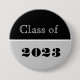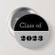 La clase grad del pin del botón se muestra en tonos negros y grises. Texto: Clase de 2023.