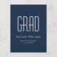 Graduación Clase 2023 Postcard de invitación azul con diseño minimalista. Con letras en personalizable blanco, puede agregar su propio texto. Una manera simple de celebrar a ese graduado especial.