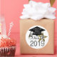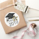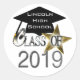 Guay, moderno look de la graduación "Clase de 2019" sellos para sobres y pegatinas de formas redondeadas populares en diseño gráfico elegante de números plateados sobre un fondo blanco y limpio contrastante y un diseño gráfico de tapón negro de graduación con un tassel dorado. Una estrella dorada brillante también se suma a este divertido diseño. Añada fácilmente el nombre de la escuela, el nombre del graduado o cualquier texto personalizado al gorra de graduación. ¡Genial para toda la clase de graduación!