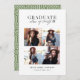 Moderna invitación de graduación fotográfica. Con tipografía audaz y texto de guión de tendencia. El color de fondo geométrico puede modificarse.