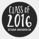 Añada un divertido sello a sus anuncios de graduación o invitaciones a fiestas con este moderno diseño de tipografía. Las letras blancas en negro clásico combinan con cualquier tema o decoración. ¡También hace un gran favor pegatina!