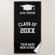 Clase personalizada de toallas de playa para graduarse. Toalla de playa personalizado con nombre y año de postgrado; 2023, etc. Idea de regalo de fiesta de graduación de Guay para graduados, estudiantes, ancianos, etc. Accesorios de verano divertidos para la playa o la piscina. Color de fondo negro y blanco o personalizado. Gorra de tassel y plantilla de tipografía de letras grandes.