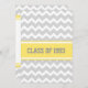 Invitaciones para el fiesta de la reunión anual de clase de su escuela en negrita y alegre lemon amarillo, blanco y gris chevron zigzags patrón rayas. Personalizable con los detalles de su fiesta y su año de graduación, contáctenos para obtener un color personalizado.