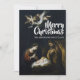 Tarjeta de Navidad con La Natividad de Bartolomé Estebán Murillo (c. 1665-1670). La pintura muestra a la Sagrada Familia reunida alrededor del recién nacido Cristo Niño bañado en una luz cálida, con ángeles observando desde arriba. Es una escena pacífica y espiritual llena de reverencia. Con Feliz Navidad en el frente, puedes personalizarla con tu nombre y sentidos deseos en la espalda.