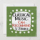 Un divertido diseño tipográfico que dice "Música clásica: puede recomendar, 5 estrellas". Es texto en negro y rojo sobre un rectángulo blanco con puntos blancos divertidos y juguetones rodeándolo, todo sobre un fondo verde.
